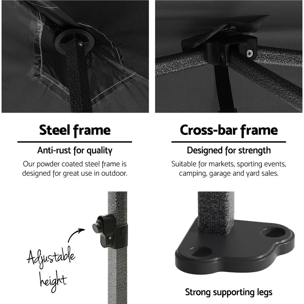 Instahut Gazebo Pop Up Marquee 3x3m Folding Tent Wedding Outdoor Camping Canopy Gazebos Shade Black